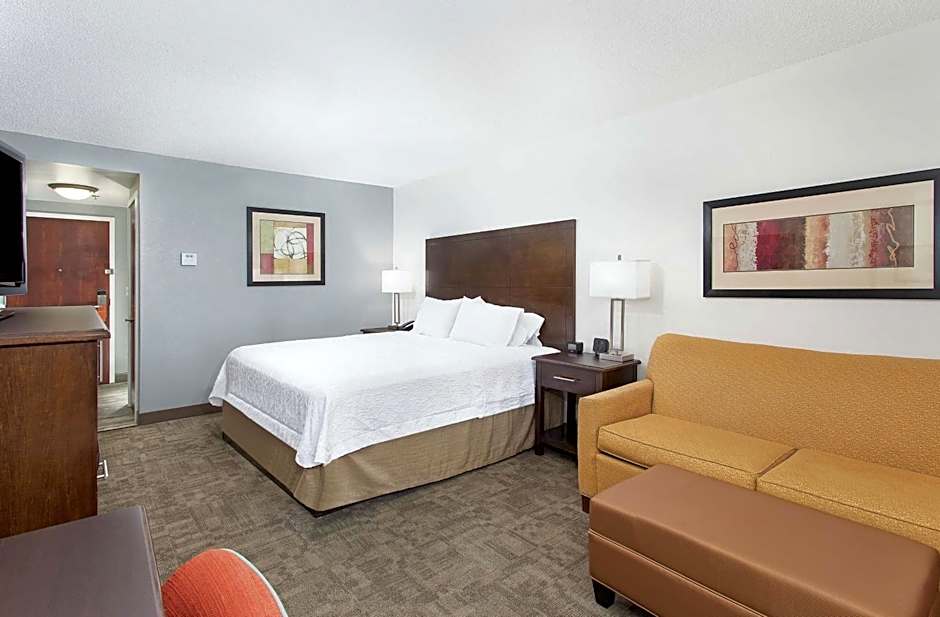 This accessible room features a roll-in shower, visual alarm, microwave, and refrigerator.